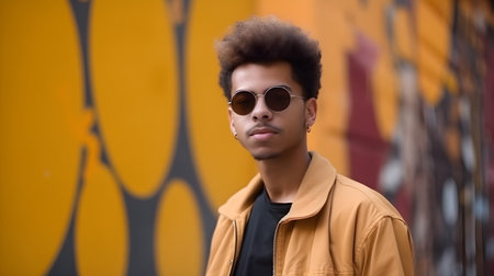 A person wearing stylish sunglasses, standing confidently against a graffiti-covered urban wall, embodying cool vibes.