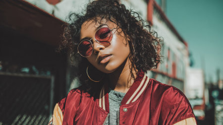 Portrait of a beautiful african american woman in sunglasses and cap