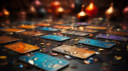 A large collection of vibrant jewelry in a shiny circle generated by artificial intelligence
