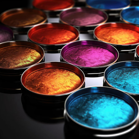 A large set of shiny eyeshadow in vibrant colors generated by artificial intelligence