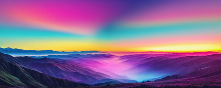 Colorful gradients flowing smoothly across a serene background landscape