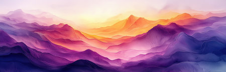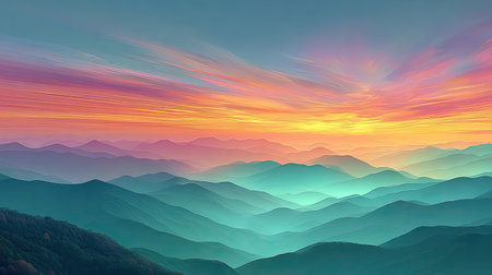 Serene Landscape of Calm Hills and Mountain Ranges Under a Gradient Sky with Pastel Colors