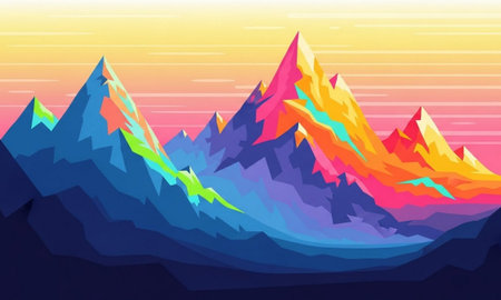 Abstract geometric mountain landscape illustration with vibrant colors and sharp angles