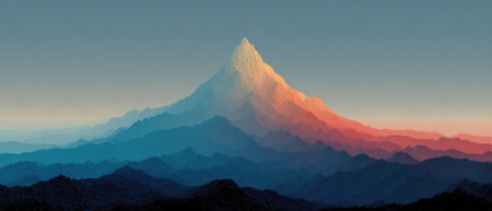 Pyramid style mountain silhouette with gradient colors at sunrise creating peaceful mood.