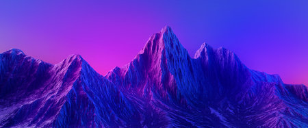 3d rendering. Abstract neon background with mountains. Fantastic terrain landscape