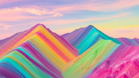 Mountains showing rainbow colored mountains with pastel sky and clouds. resolution