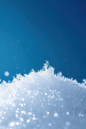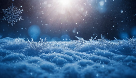A serene winter scene featuring delicate snowflakes on a frosted blue background. Ideal for seasonal decoration and evoking a tranquil atmosphere.