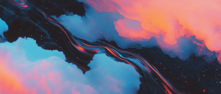 Vibrant abstract texture with pink and blue splashes on dark background.