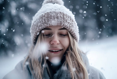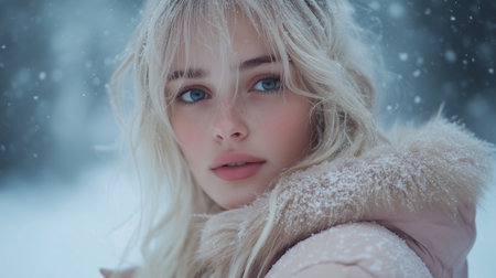 Embracing the Cold: A Joyful Blonde Woman in a Winter Wonderland