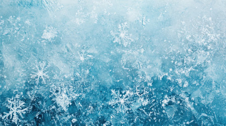 This beautiful frosty winter background features intricate snowflakes and ice patterns, creating a serene and tranquil atmosphere perfect for winter-themed projects.