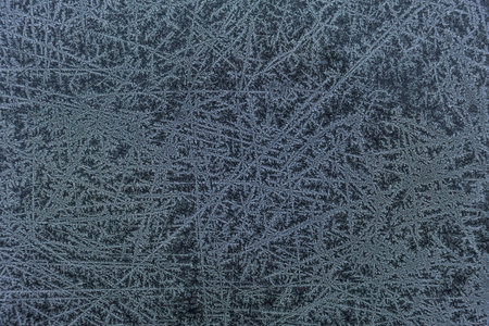 Close up abstract macro view of delicate frosty patterns on a natural surface with cool blue tones