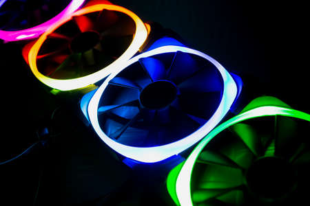 Computer fans with multicolored colored led light, blue, red, purple and green