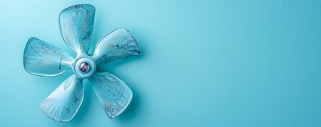 Vintage Metal Fan Blade with Light Blue Background, Minimalist Design, Industrial Decor, Detailed Texture, Retro Aesthetic, Home Decor, Wall Art, Photography, Cool Toned Image, Zen and Tranquil Vibe AI Generative