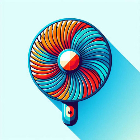 Vintage electric fan isolated on blue background. Colorful vector illustration.