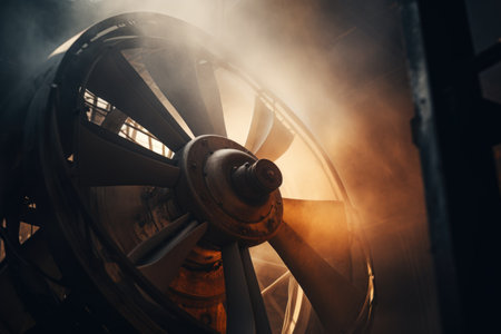 A detailed close-up view of a propeller on a steam engine. This image can be used to depict the intricate machinery and power of steam engines in various industrial and historical contexts.