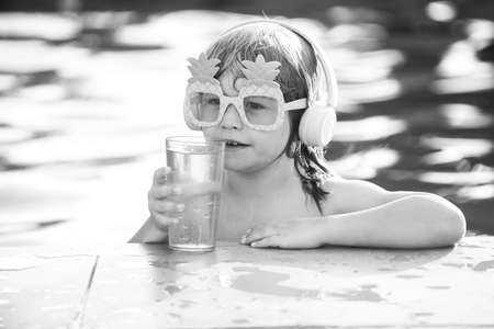 Boy kid happy swimming in a pool. Summer child.