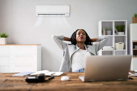 Happy Young Businesswoman Working In Office With Air Conditioning