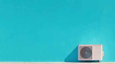 Modern air conditioning unit on a minimalistic gray tiled wall, showcasing sleek design and functionality for home or office environments