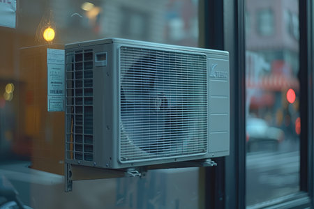 A close-up view of a white air conditioning unit releasing cold air, offering relief on a hot day.