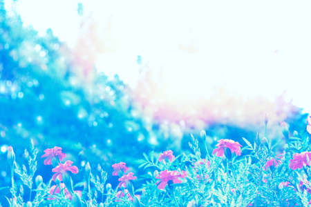 Trendy Color of Year. Very peri. 2022. Summer flowers in the summer meadow at sunset. Natural background. Nature at the end of summer