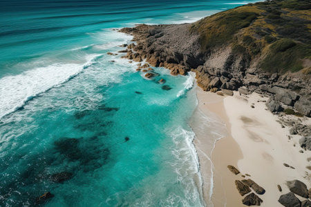 Generative AI : Aerial view of the beach in Thistle Cove Cape le Grand Western Australia Australia
