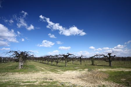 Australian wineries rows of grape vines taken on a bright and sunny day.