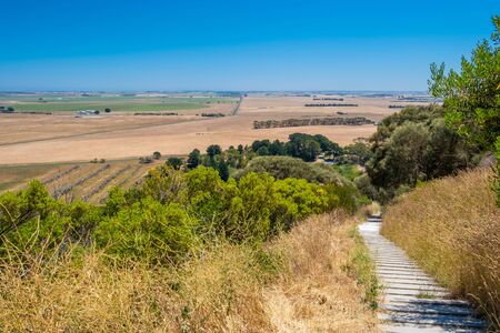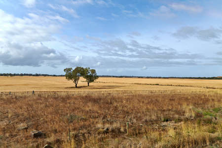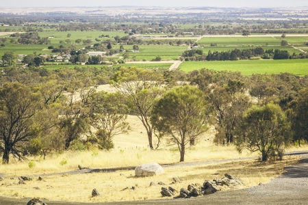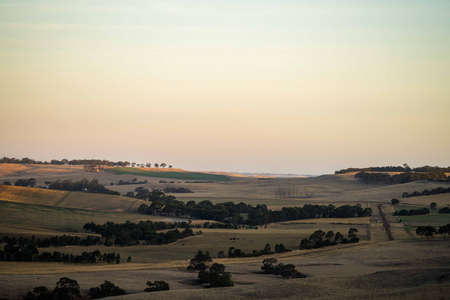 View of farmland along Dukes Highway in rural area of Victoria, Australia