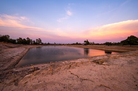 Reservoir with walkway at sunset, Chiang Mai province.