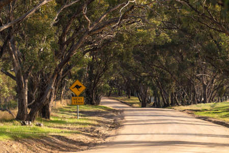 Kangaroo warning next to the country road in the Onkaparinga River National Park on a day, South Australia