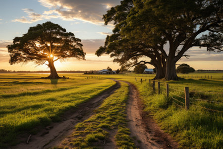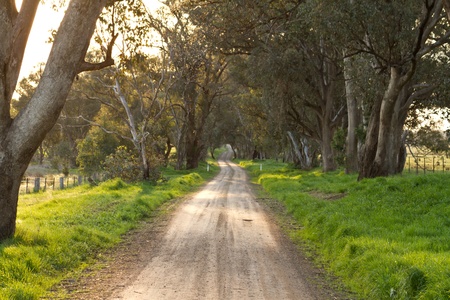 Australian rural dirt road landscape in late afternoon sun