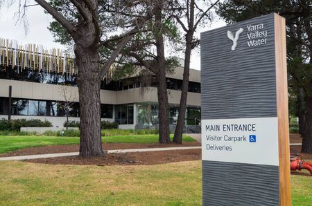 Melbourne, Australia - September 28, 2018: Yarra Valley Water is a water distribution business in Melbourne. Its headquarters are in suburban Mitcham.