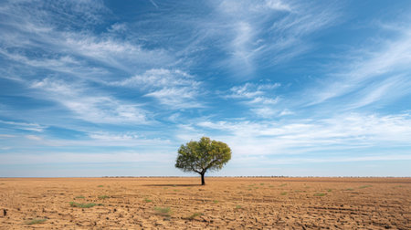 A lone tree standing amidst barren land, a stark reminder of resilience amidst drought