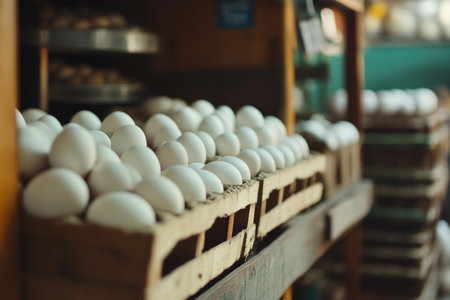 Fresh White Eggs Displayed at Local Farm Market