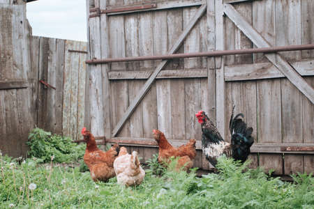 chickens in the village yard in the paddock