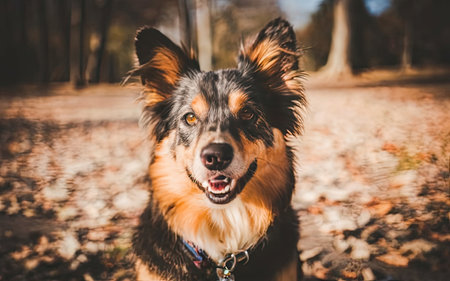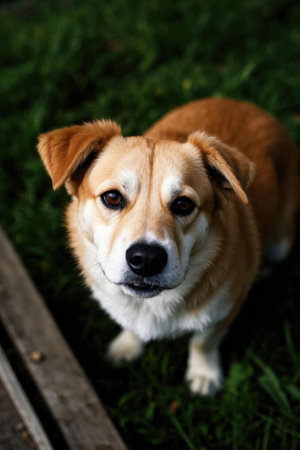 Portrait of a beautiful mixed breed dog in the park. Selective focus.