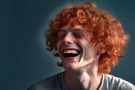 A close-up portrait of a young man with curly hair and a warm smile, set against a calming blue backdrop. His expressive eyes and friendly demeanor radiate positivity and approachability, inviting connection and warmth.