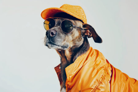 Funny party dog in a bright shiny cap and stylish sunglasses isolated on white background