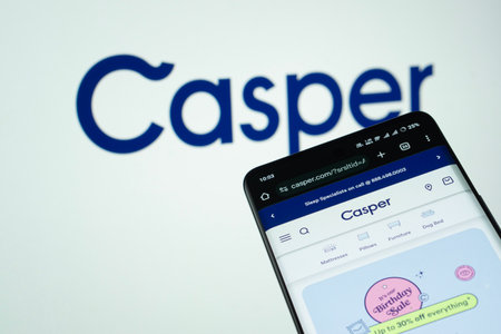 Dhaka, Bangladesh- 03 July 2025: Smartphone displaying Casper web interface against Casper logo background.