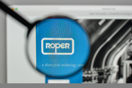 Milan, Italy - November 1, 2017: Roper Technologies logo on the website homepage.