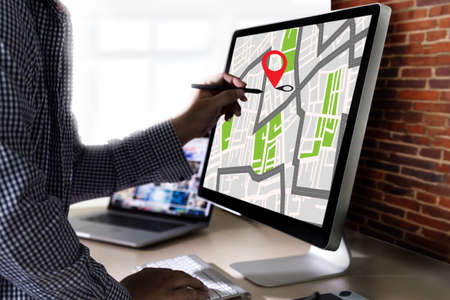 GPS Map to Route Destination network connection Location Street Map with GPS Icons Navigation