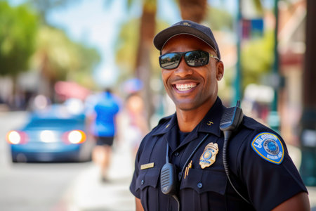 A police officer exudes friendliness with a smile ready to connect with the genuine community.
