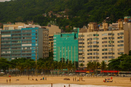 RIO DE JANEIRO, BRAZIL- JULY 31, 2012: A view of Copacabana beach in the morning with hotel buildings and people in Rio de Janeiro, Brazil