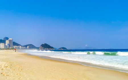 Copacabana and Leme Beach with Blue Water and White Beach Sand in Rio de Janeiro Brazil.