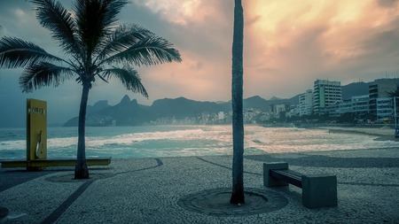 Copacabana Beach with palms. Light effect applied. Rio de Janeiro, Brazil