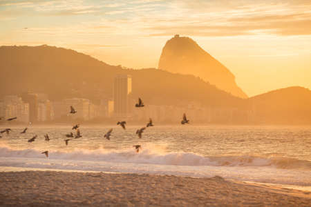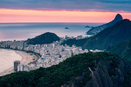 Sunrise view of Copacabana and mountain Sugar Loaf in Rio de Janeiro