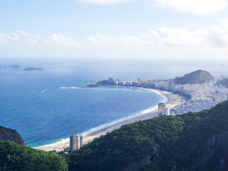 Aerial view of the famous Copacabana Beach, as seen from the top of the Sugarloaf Mountian. In Rio de Janeiro, Brazil