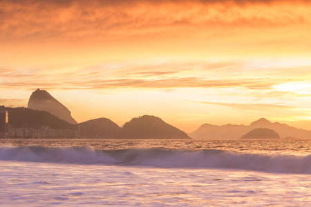 Beautiful sunset at Copacabana beach, Rio de Janeiro, Brazil