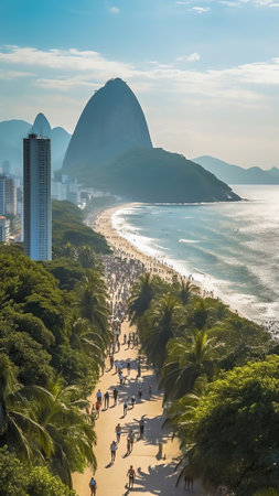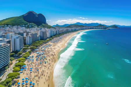 Aerial view of Copacabana beach in Rio de Janeiro, Brazil, Copacabana beach in Rio de Janeiro, Brazil. Copacabana beach is the most famous beach of Rio de Janeiro, Brazil, AI Generated