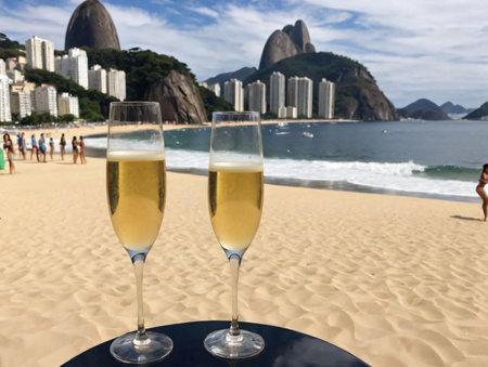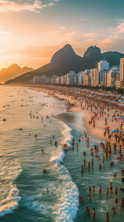 Copacabana Beach Golden Sand, Blue Sea and Wave Country., generative AI