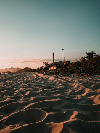 Sunset on the sands of Ipanema beach in Rio de Janeiro
